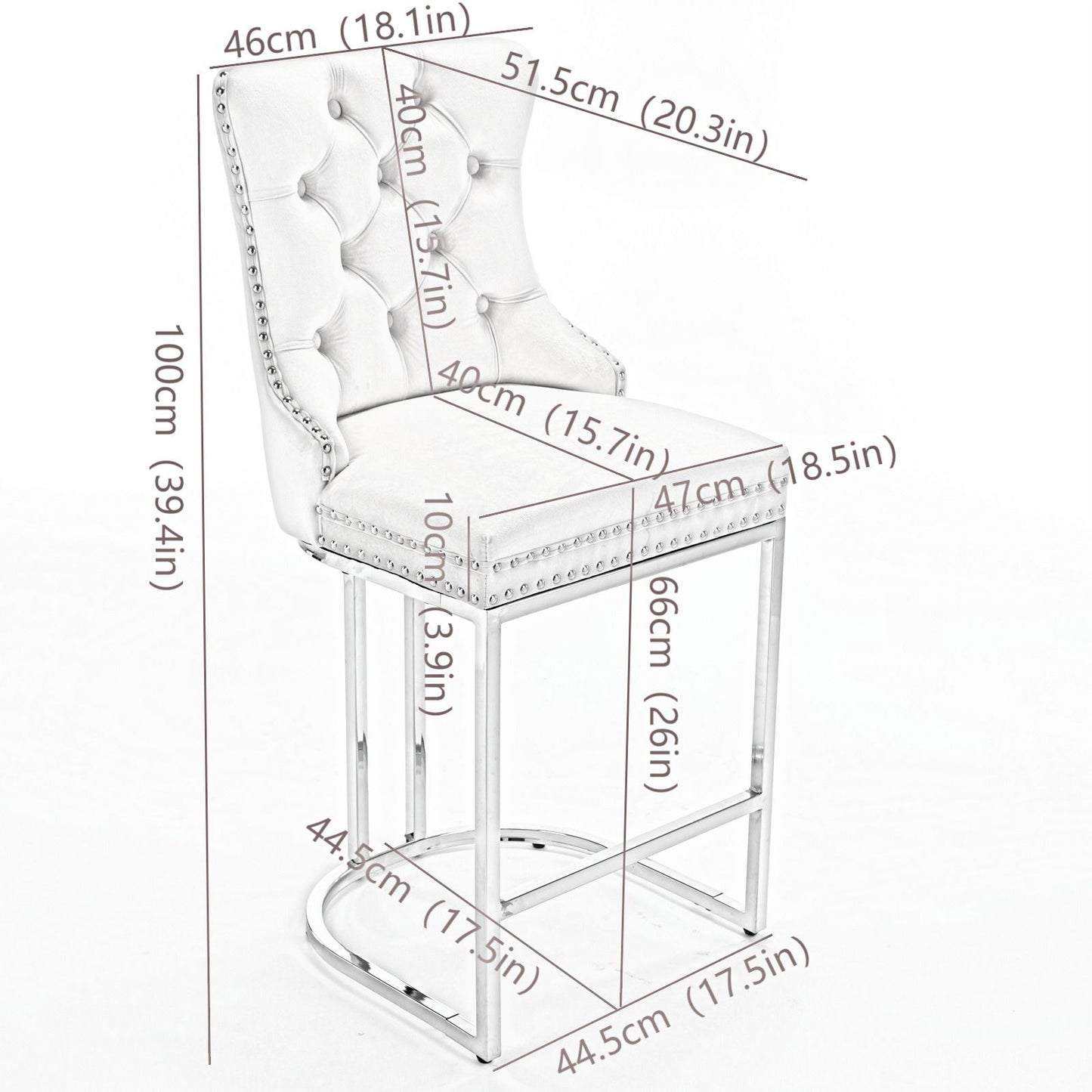 26" Modern Wingback Velvet Bar Chairs with Rivet Trim – Set of 2