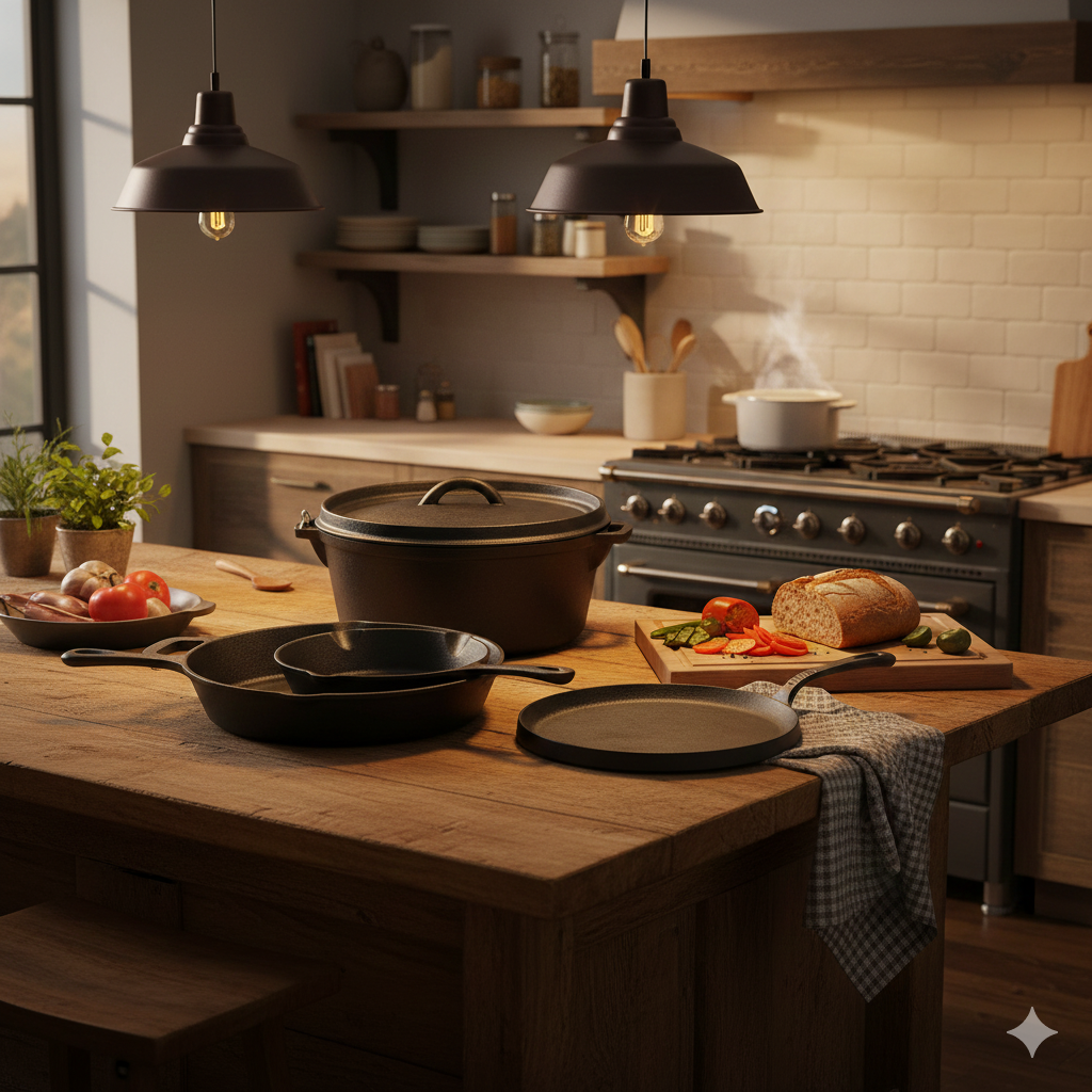 Upgrade your kitchen with this 5-piece cast iron cookware set, blending time-honored craftsmanship with everyday versatility. Whether you're searing steaks, baking cornbread, or simmering hearty stews, this set brings reliable heat retention and rustic charm to every dish.