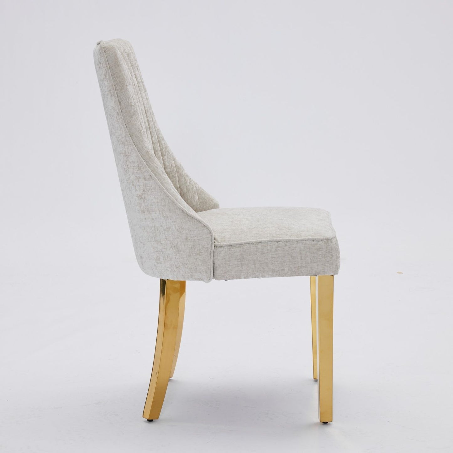Beige Chenille Dining Chairs with Golden Stainless Steel Legs - Set of 2