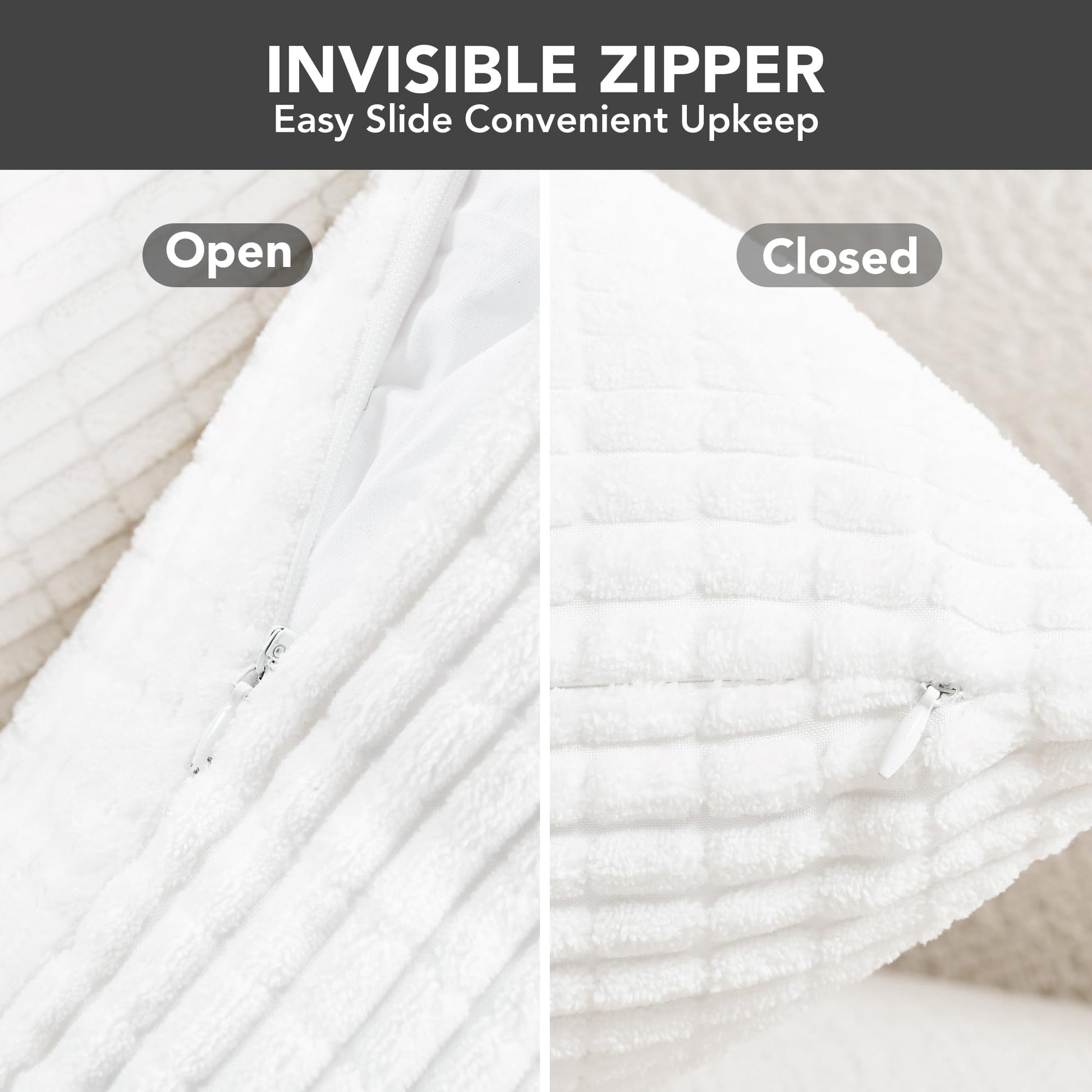 With a modern design and bright white color, these versatile covers effortlessly complement any decor, from a contemporary living room to a classic bedroom. Thoughtful details like hidden zippers ensure a seamless appearance and make for easy insertion and removal of your pillows.