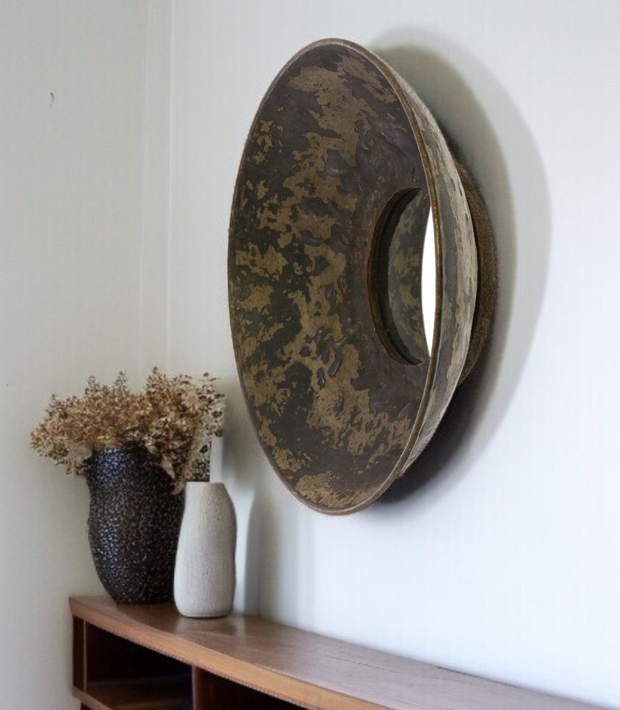 Handcrafted Reclaimed Metal Bowl Accent Mirror – Rustic & Unique Decor