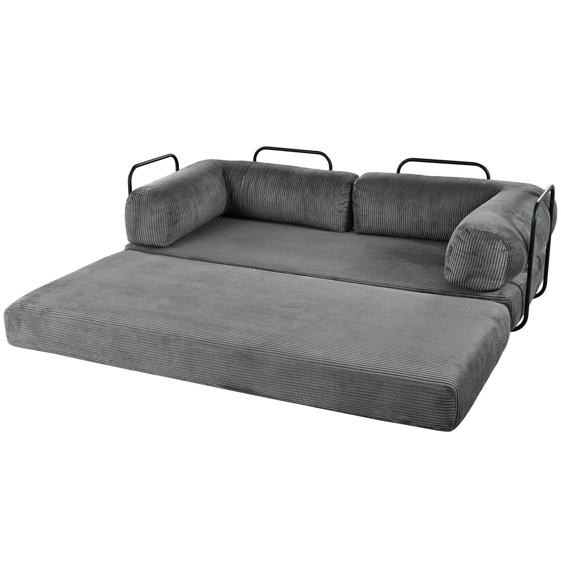4-Seat Modular Sectional Sofa in Gray Corduroy - Converts to Guest Bed (No Assembly)