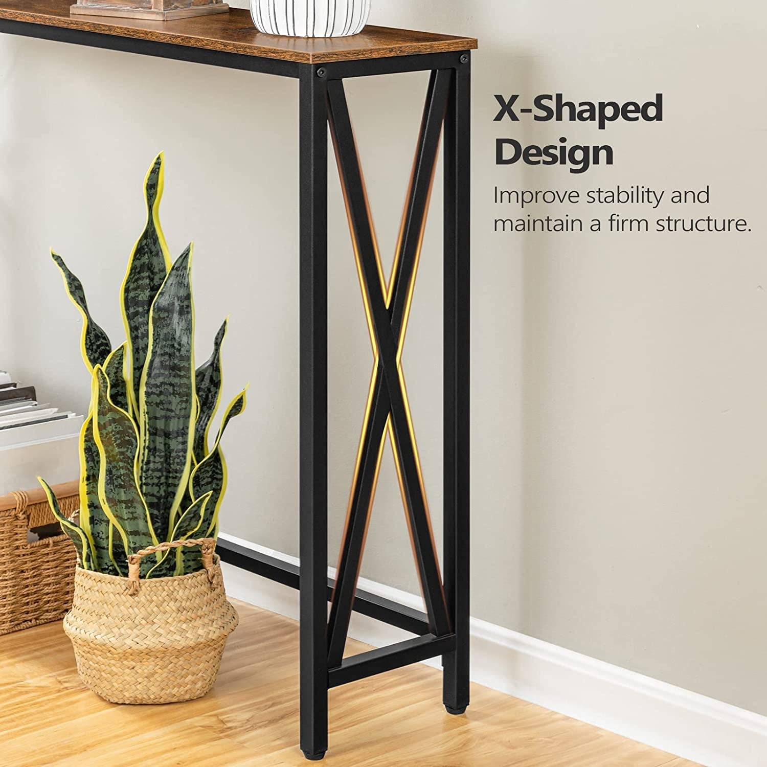Crafted with a sturdy steel frame and engineered wood, the table is both stable and durable. The X-shaped crossbar and included anti-tipping accessory enhance its stability and keep your home safe. This is more than just a table; it's a multi-purpose furniture piece that serves as a console, entryway table, or even a TV stand, effortlessly fitting into any room of your home.