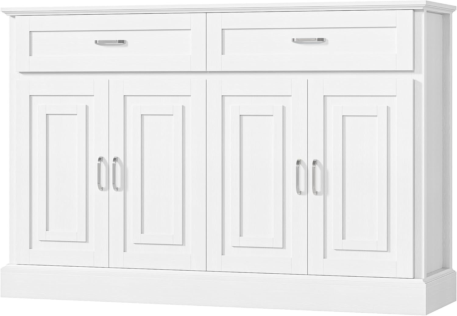 Elevate your home with the FACBOTALL White Buffet Cabinet—a perfect mix of luxury, storage, and modern design. Standing at 36.3" tall, it features a spacious 55.1" wide countertop ideal for coffee makers, toasters, or decorative accents, making it taller and more functional than typical buffet tables.