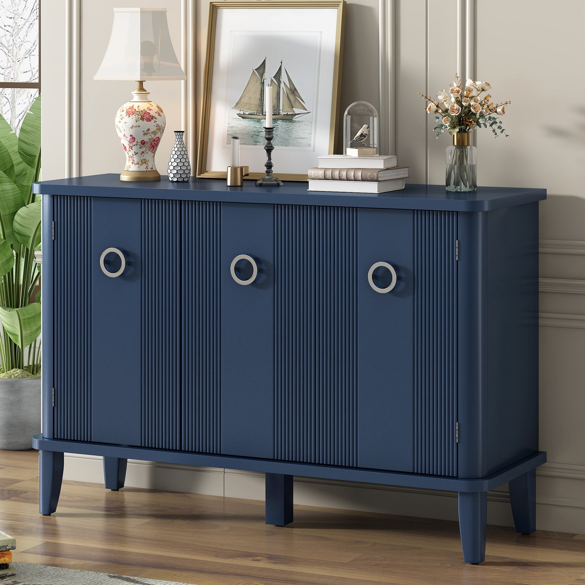 Clean lines, thoughtful details, and a quietly confident presence—this storage cabinet brings balance and warmth to your space without trying too hard. Finished in a rich navy tone and grounded by solid acacia wood doors and legs, it blends modern simplicity with natural texture for a look that feels both fresh and enduring.
