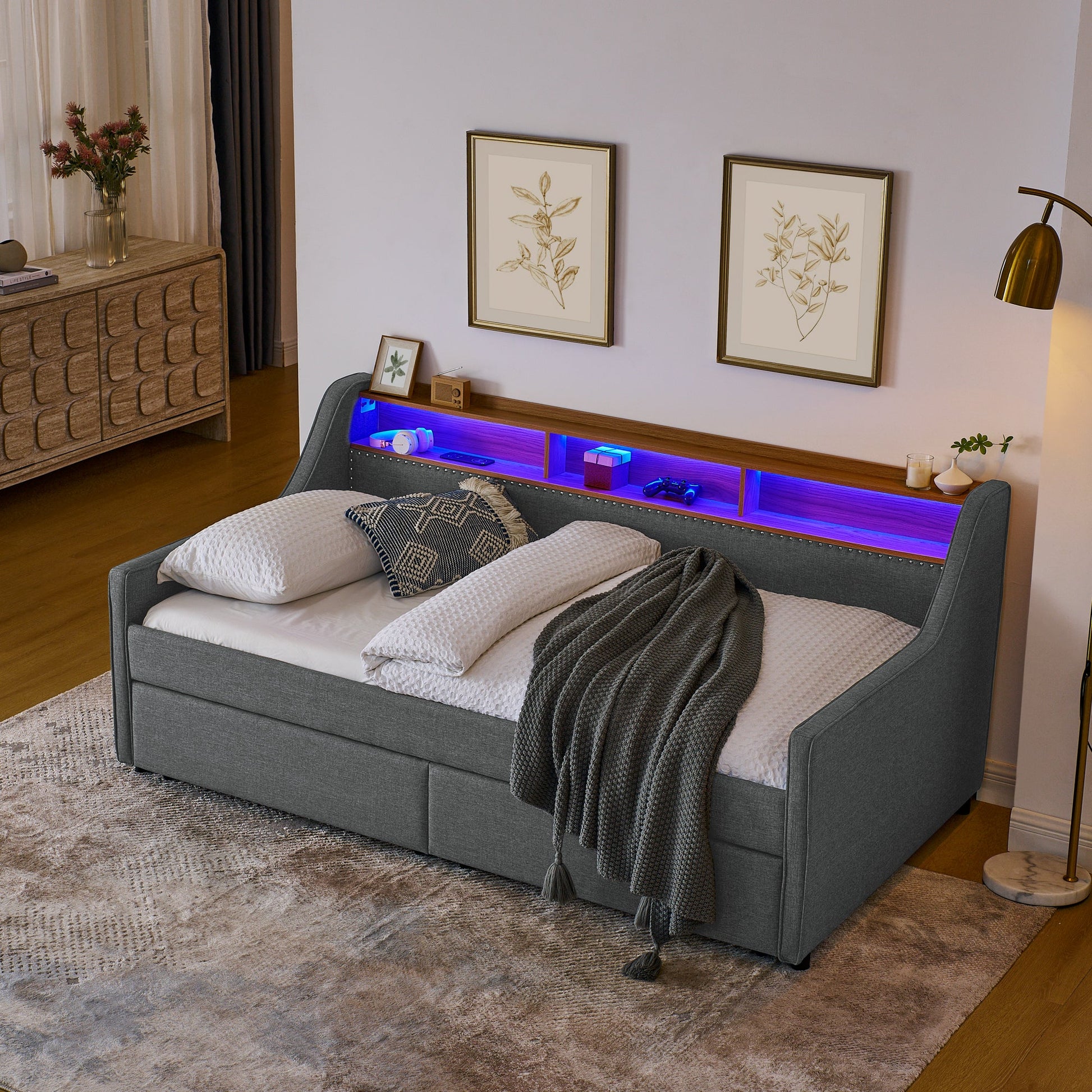 The Luna | Twin Storage Bed with LED Headboard & Wireless Charging