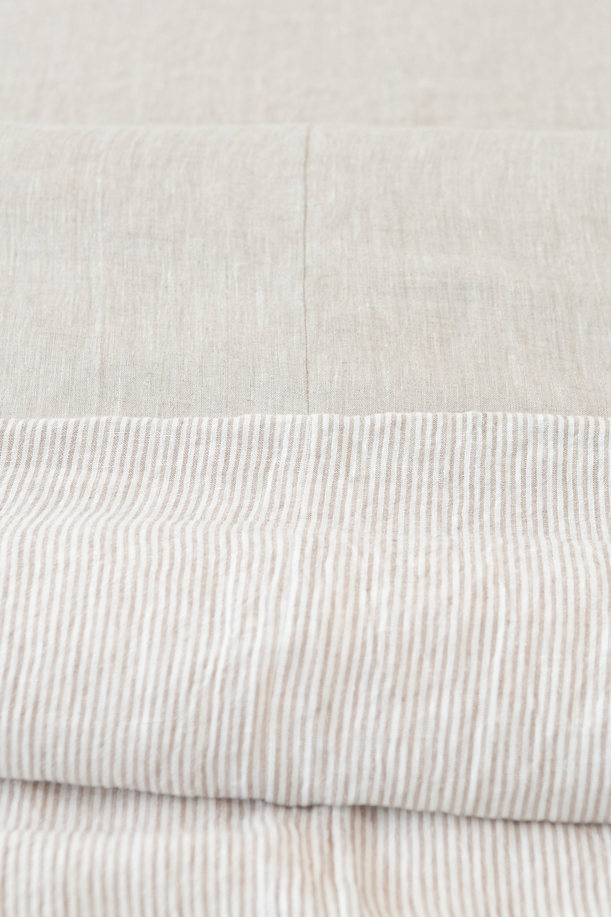Two-Sided Stonewashed Linen Bedding Set – Natural Light & Striped Beige