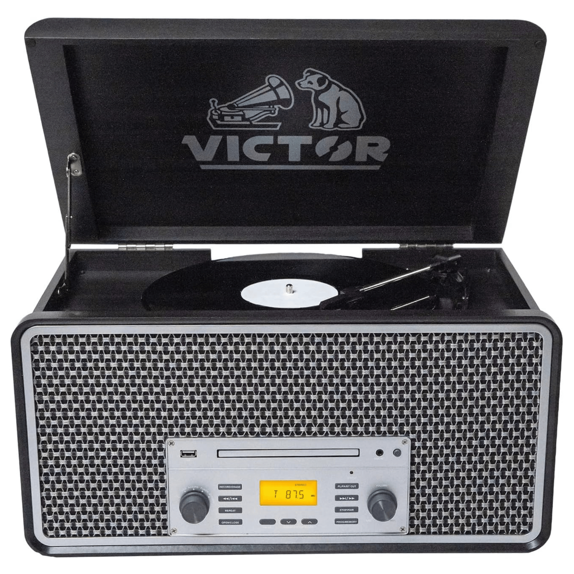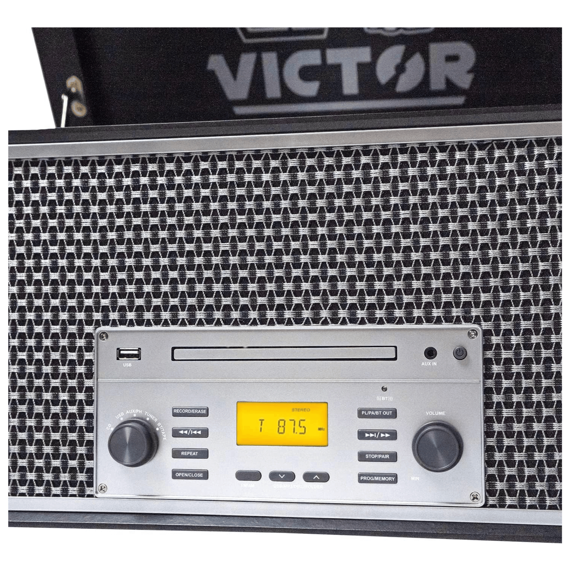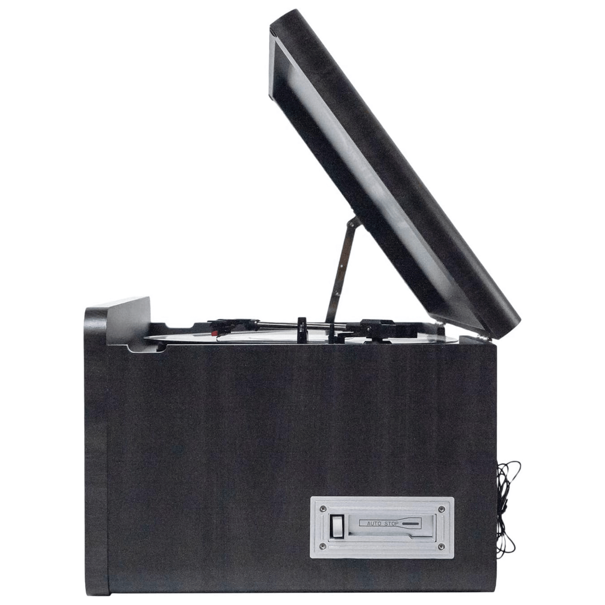 - 8 Ways to Play: A 3-speed turntable (33 1/3, 45, 78 RPM), CD player, cassette deck, AM/FM radio, USB, Aux-in, and Dual-Path Bluetooth.